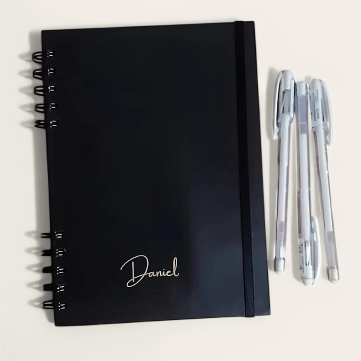 La Agenda Black crea un contraste espectacular con la tinta blanca de los 3 lapiceros incluidos, es una experiencia de escritura fluida y llamativa.